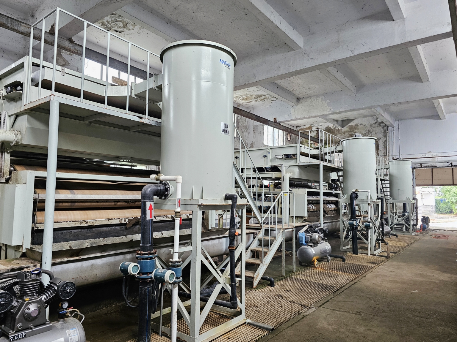 Taken at a municipal sewage treatment plant in Liaoning, the Haibar integrated thickening and dewatering system (3-meter belt width) has been operating stably since its 2025 commissioning. The unit is shown continuously processing high-organic sludge, producing uniform and compact filter cakes. The new generation automated control system has effectively ensured a notable improvement in the plant's overall sludge treatment efficiency.